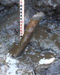 - Distal end of a stake showing chop marks and crushing from being driven into ground