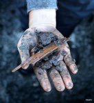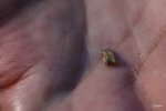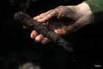 - Gwaliga examining a wood chip