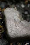- A small flake of stone, of an unusual material type.