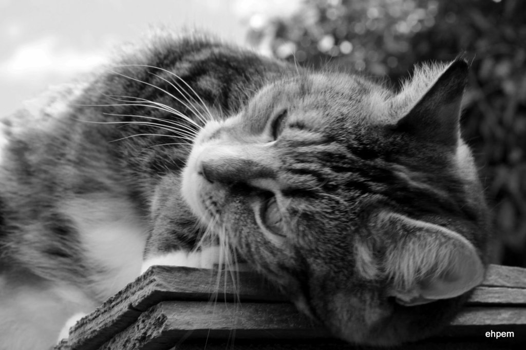 She likes to be higher than us mere humans, and these pictures show her on an arbor (where she loves to sharpen her claws) and on the wood shed roof, which is a bit nasty with racoon droppings. The bottom photo shows her beautiful colours which help her to disappear completely in the shadows of a bush. She’s not much of a hunter of birds, but does keep mice completely at bay, and the numbers of rats pretty low for being near the ocean.