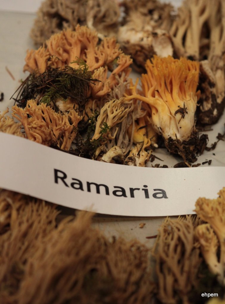 My visit to the Swan Lake Christmas Hill Nature Sanctuary on the weekend was also the subject of yesterday’s post about berries that are still present on the shrubs around the lake. We did not know when we set out that in the Nature House was the annual display of fungi put on by the South Vancouver Island Mycological Society. This is another example of the great programs that the Nature Sanctuary hosts. There were hundreds of mushrooms and bracket fungus and their relatives on display – rows of tables were in fact covered by them. Many I had never seen before, so it was fascinating.