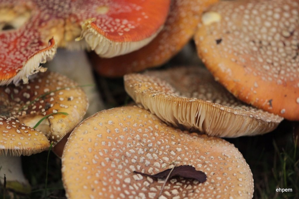 Yeah me too – fried in really hot butter. Though the Amanita would be a poor idea to eat, and the big one with the green “gills” (what are those cells with the spores in them called?) looks unpalatable as well.