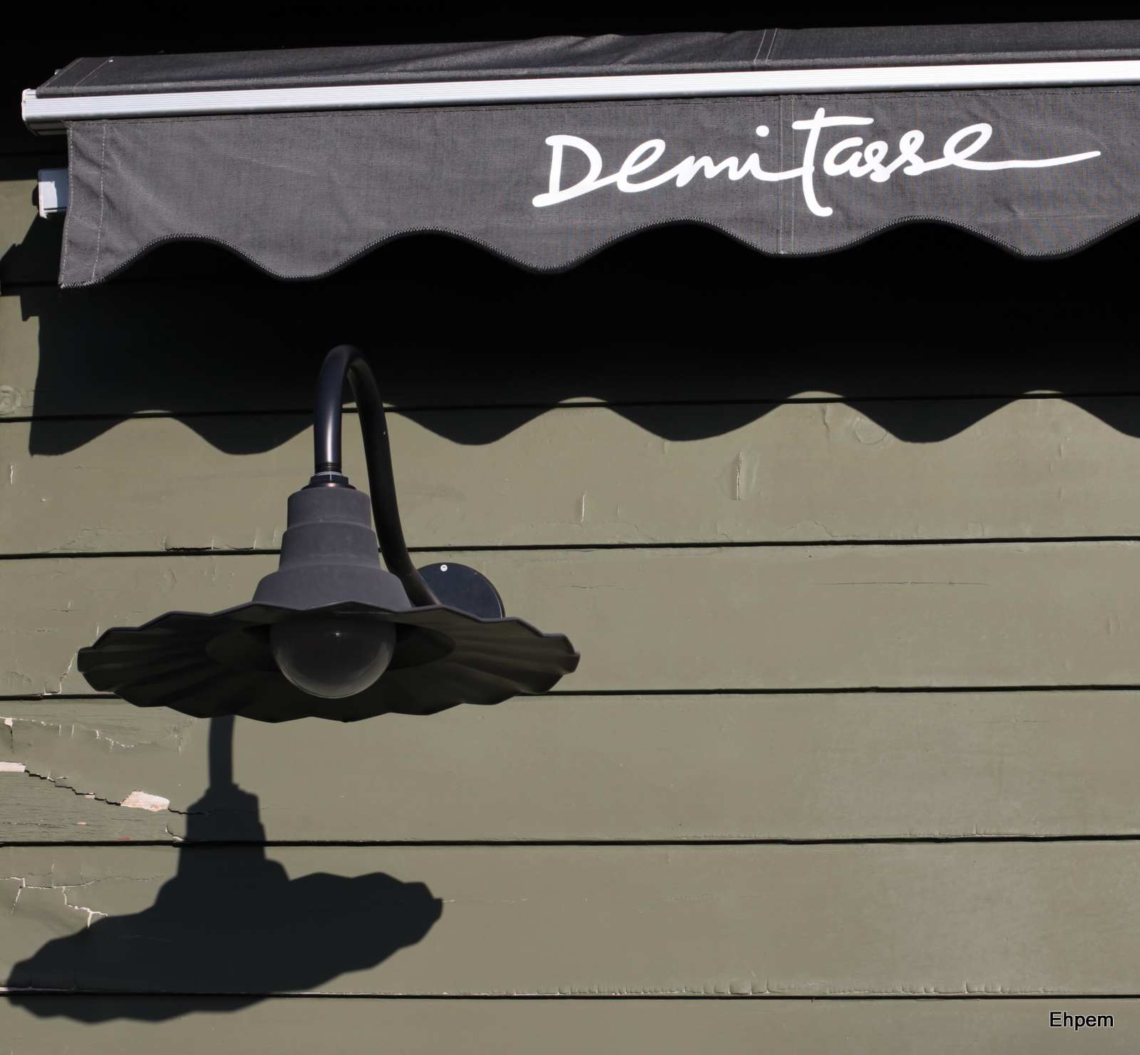 The Demitasse Bakery Store is in the middle of south Oak Bay at the corner of McNeill Avenue and Roslyn Road. It is very much a part of my surroundings, not just because the store is a place we shop frequently but because the owners were our neighbours, and at one time they had a café (of the same name) downtown next to my office where I went for coffee every day for a few years. The store has very good coffee, wonderful baked goodies and bread, a small but high quality choice of other foods and around the outside a small garden center that also provides shade and atmosphere for a few tables and benches.