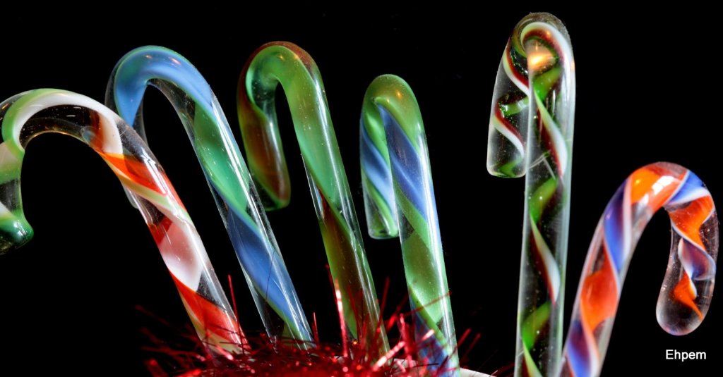 I have never seen anything like these glass candy canes. They are universal symbol of Christmas. I love colored glass anything. It’s the only thing I have ever collected. Your photo with the lighting makes them sing!