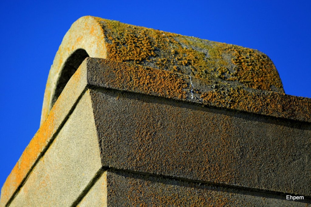 • Thank you David. That kind of lichen grows on many of the rocks near the shore, its less common to see it unmolested on a built object, though some of the headstones also have it. (Edit: oops, answered with the computer logged into my wife’s blog).