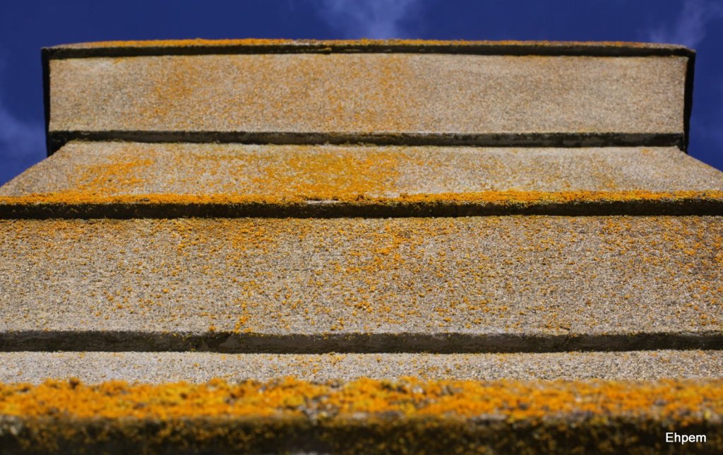 Thank you Karen – these lichens have such a wonderful colour which crops up over and over at the ocean’s edge around here. On these chimneys its just more rampant than on natural surfaces. Some of the texture comes from the mortar/concrete that the lichen are growing on. I sure hope that no one gets a bright idea that they need to be freshened up with a power washer or something. It would take another 100 years to get like this.