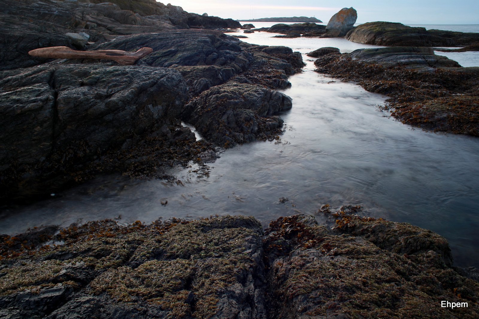 When I was away from it, I really missed the ocean. I have been lucky enough to work on the ocean edges quite often, “fooling around in boats” for pay. When I was working in London for a few years I really missed the littoral zone and all the work I had done there. Fortunately I found my way back into it on my return and still get out there from time to time. But I live so close now, it does not matter as much that i work in a cube-farm most of the time. Bladder wrack or Fucus (the brown seaweed in the foreground) is so essentially coastal that it had to appear in a photo sometime.