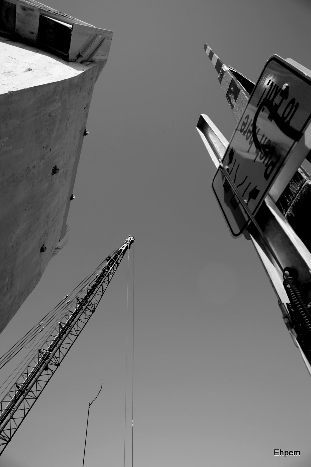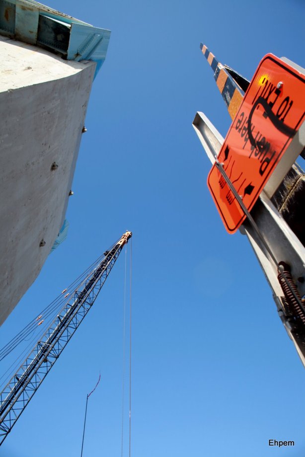 I took several pictures, but have not found the energy to edit them all into a presentable shape, so you will have to wait. I will do a gallery sometime soon of those images. Other ones in this series can be seen at this link. The smaller crane continues to work on the railway span, and parts of the lower structure of that part of the bridge are slowly disappearing. This view is of the counterweight for the road bridge, a barrier for pedestrians when the bridge is up, and the crane at work dismantling the adjacent structures. I prefer the black and white version of this photograph, but the colour one is pretty interesting in quite different ways, so you get to see them both. And I get off with another light weight blog in terms of my own effort.