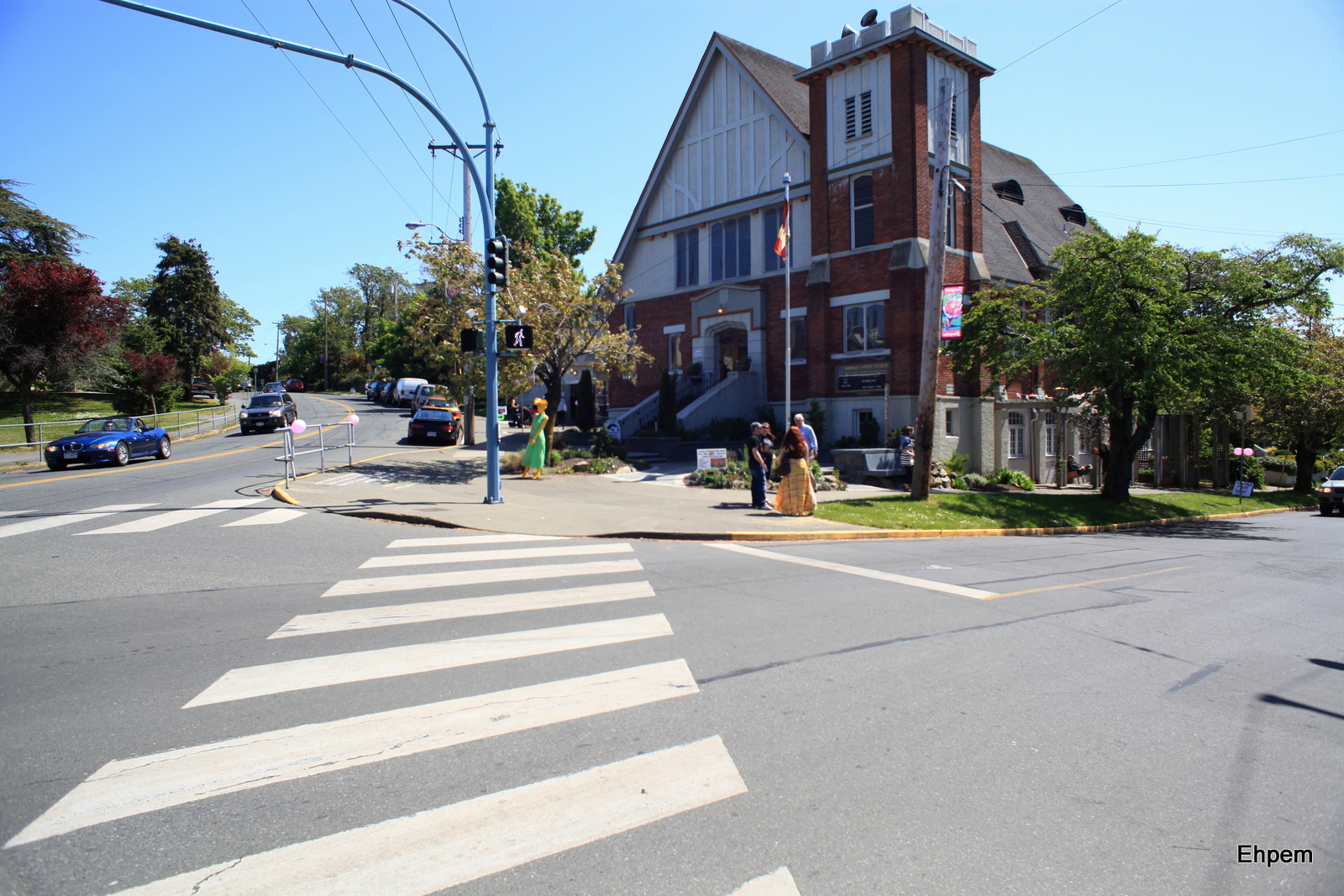Last year I posted images of a black velvet covered dress form on Pandora Street. I never thought I would be posting another series of pictures of vintage clothing on a mannequin on the streets of Victoria, but here you go. I could have asked for much better lighting than the lovely warm and bright sunlight that we had on Saturday, but I was not complaining as it was a great day, best of the year.