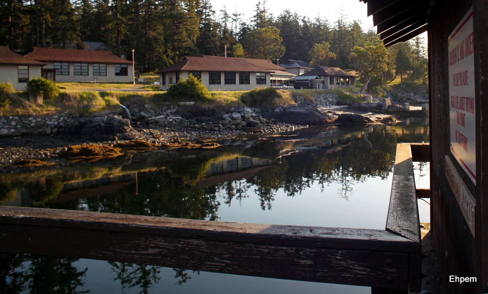 This is a view from the Friday Harbor lab dock taken shortly after dawn from in the shadow of the boat shed which can also be seen in yesterday’s post. I was inspired to take this picture by the reflected light on the under surface of the shed rafters, which has become lost in the rest of the photo, but contributes to the whole, at least for my eyes.