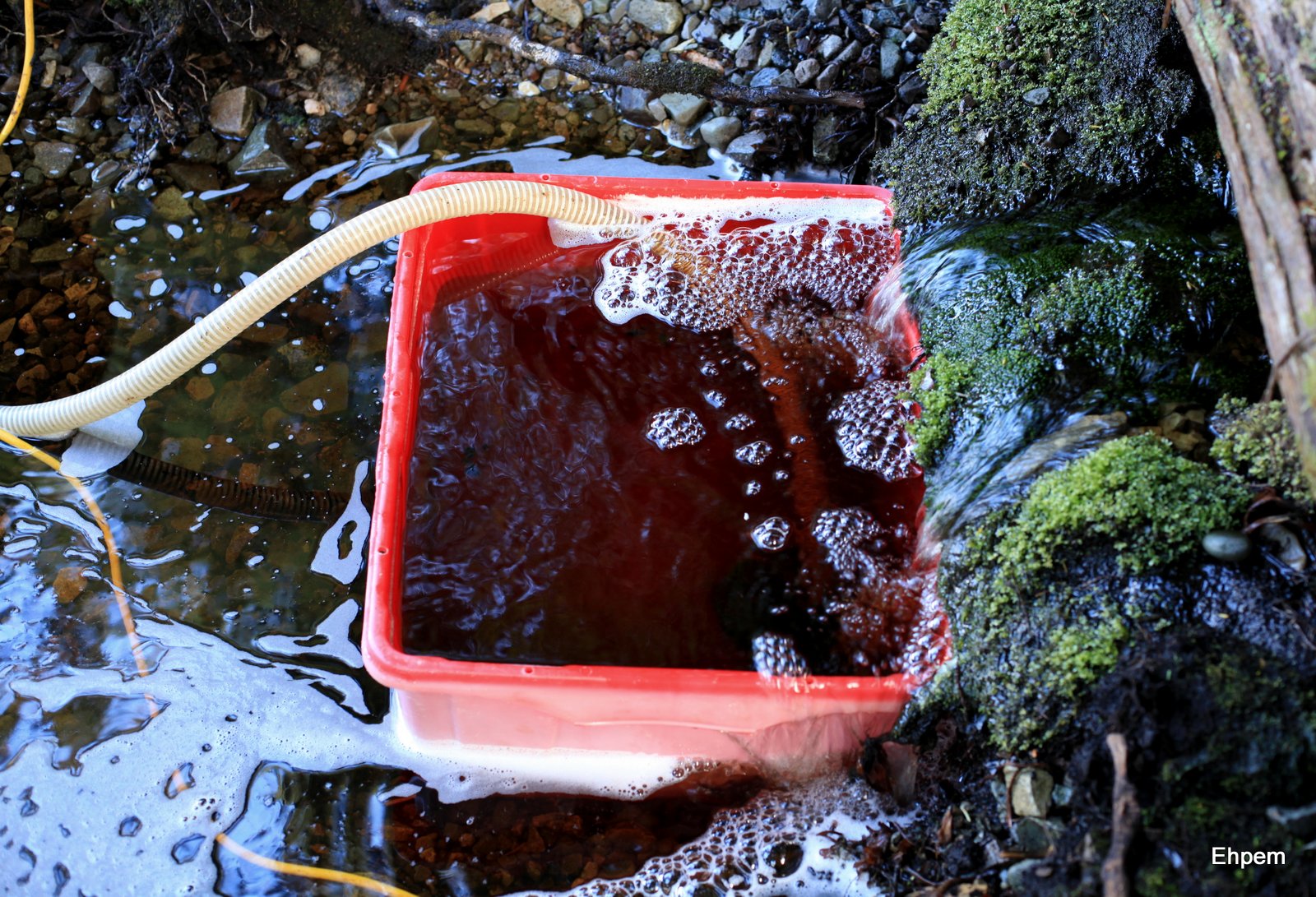 I continue the theme of water at the Kilgii Gwaay archaeological site in southern Gwaii Haanas. Yesterday’s post, Keeping Water Out, was all about our efforts to remove water from of our work space. Today’s post is all about how we put water into work space.