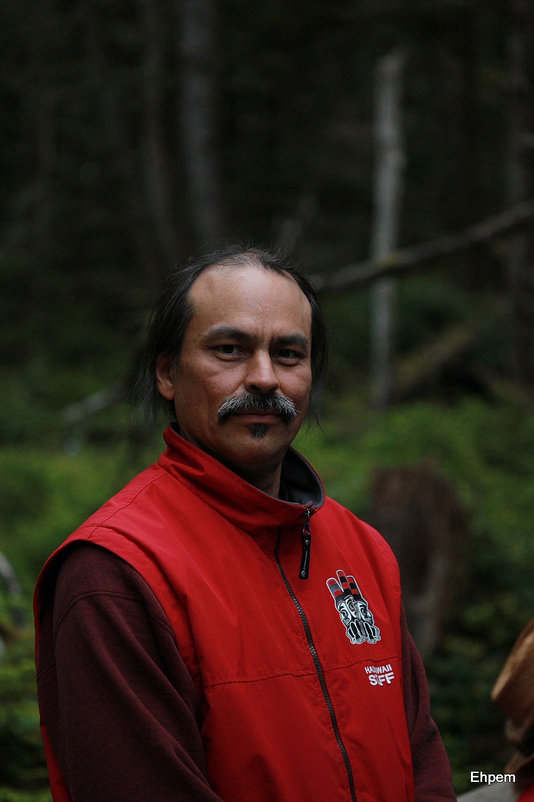 Jordan, pictured below, was with me the first time I visited SGang Gwaay 20 years ago and it was a true pleasure to meet him there again this year, as I had not seen him for 15 or more years. For three field seasons in the early 90’s (when our moustaches had not a single grey hair) we worked together finding and recording the locations of archaeological sites in the then newly formed Gwaii Haanas so that they could be properly managed. We worked on some testing programs after that for a couple more short stints in Gwaii Haanas. It seems to me so appropriate that someone that has walked most of the shorelines of Gwaii Haanas and is intimately familiar with most of the recorded cultural sites from the last 11,000 years should be chosen as a cultural steward, ensuring that respect for the land and culture is instilled in the visitors.