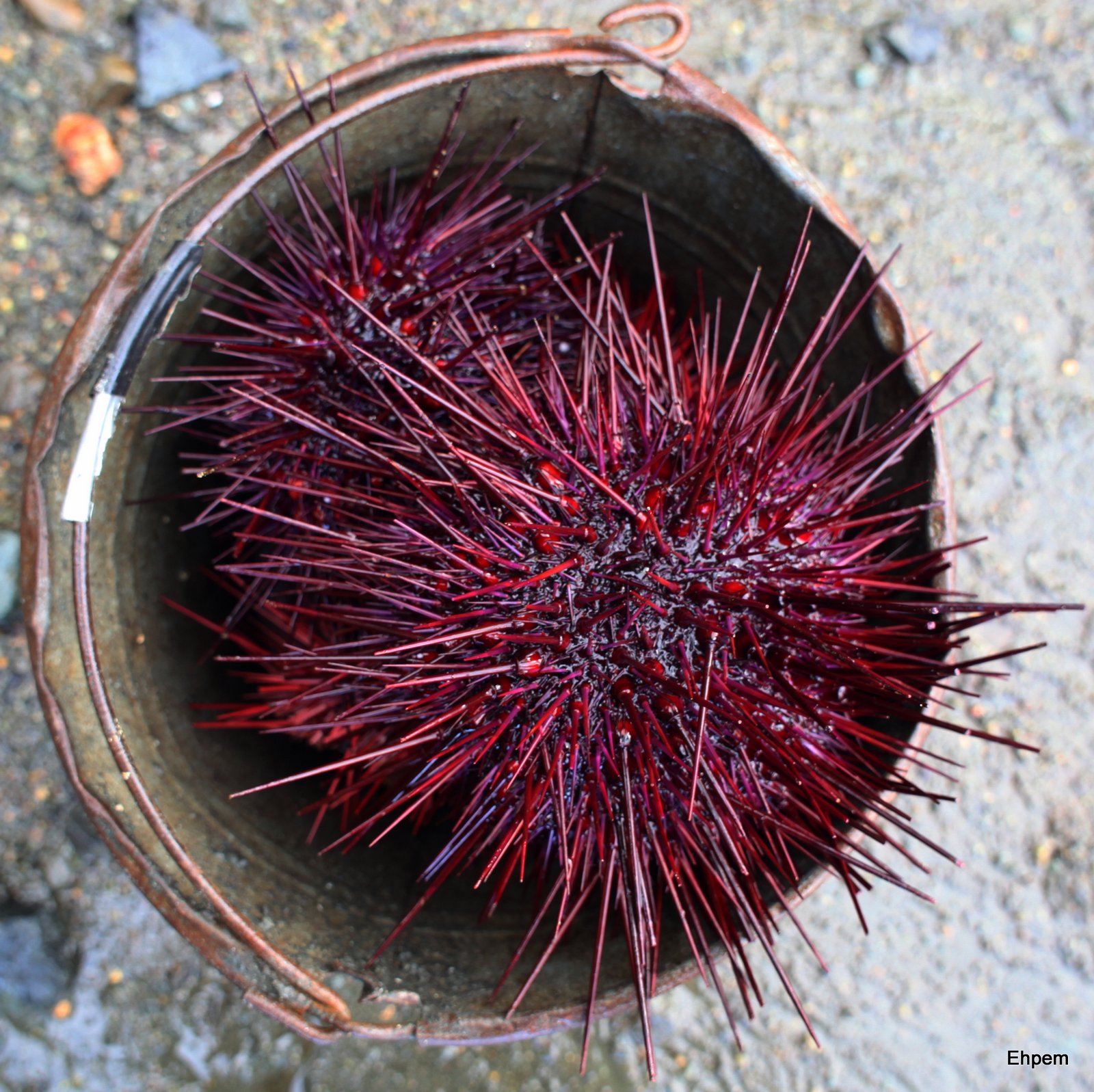 If you are going to try this, handle with great care. The barbs on sea urchin spines are perfectly designed to drive them ever deeper into your flesh, if one breaks off in your skin, which they are inclined to do. They fester and often require the application of a knife to remove them. We just kept our screening gloves on for the handling parts.