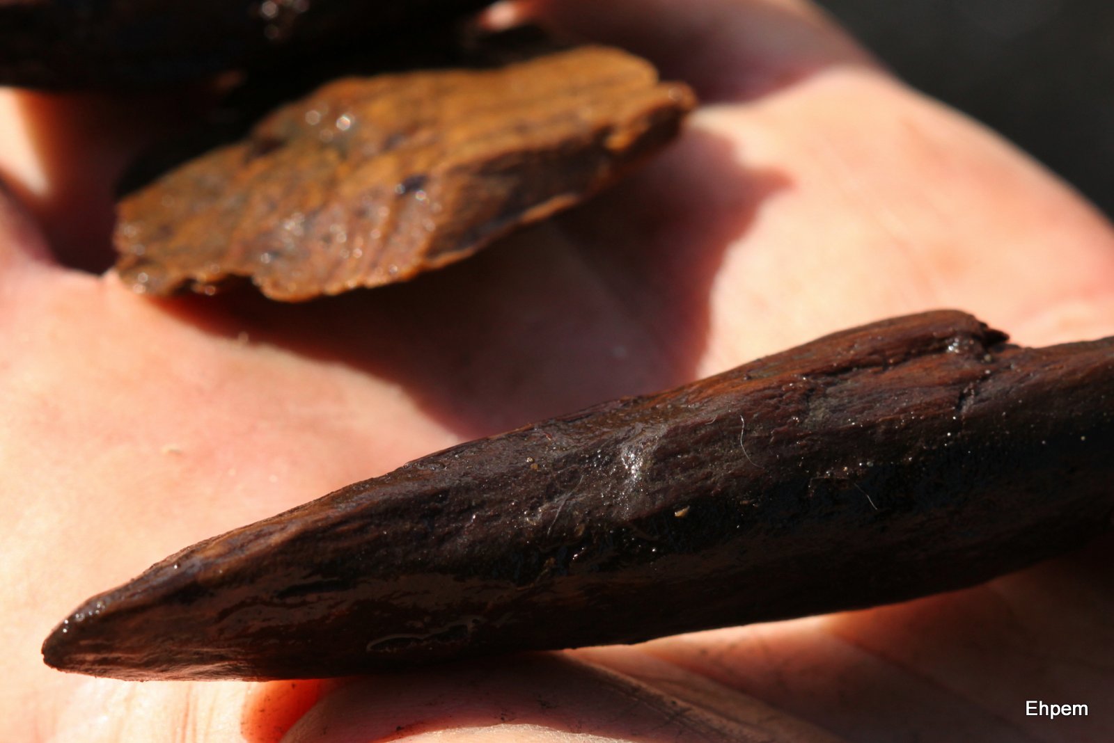 - Trimmings from making something, this split root is round on the other surface so was split in half