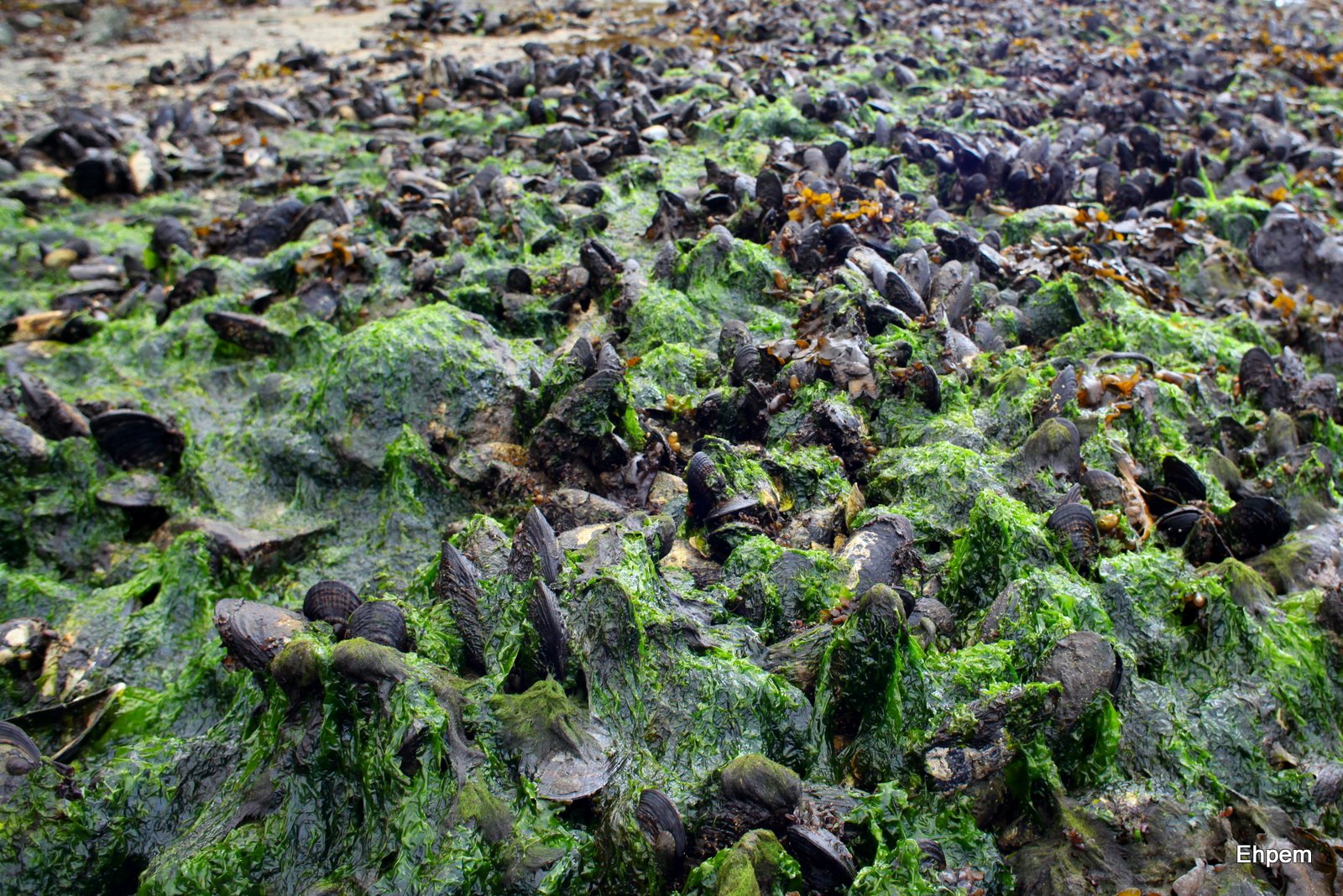 - seaweed on California mussels at Kilgii Gwaay
