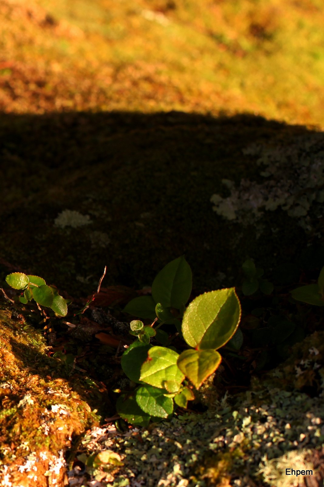 - yellow-lit salal and moss