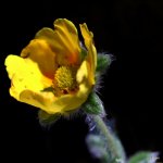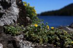 I have previously posted pictures of flies on the hairy or northern cinquefoil (Potentilla villosa) which is on a glacial erratic in the intertidal zone near the cabin. In that post one of my regular readers, K. Ryan Henisey, commented with the Haiku above – what a treat! He has graciously gave me permission to use the poem with this second post of cinquefoil pictures from the same location. I find his blog, lifeasgood, a terrific mixture of haiku, photographs, paintings, illustrated monster stories, musings on being a teacher and so on. And besides all that his favourite meat is Guudiingaay, so what’s not to like?