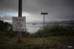 For the past few weeks I have posted about my trip to Haida Gwaii (formerly known as the Queen Charlotte Islands). The trip included some time in Charlotte (or the Village of Queen Charlotte to use its full name). A prominent feature of the main road in Charlotte and east to Skidegate (as far as I went) are the signs protesting the proposed pipeline that would bring, every day,  550,000 barrels of oil from the Alberta tar sands to a proposed loading facility at Kitimat on the mainland shore due east of Haida Gwaii. The pipeline would result in large numbers of ships taking oil to the Chinese market and bringing back the condensate (about 200,000 barrels a day) used to help the oil flow in a pipe. The condensate would return in a parallel pipeline back to Alberta.  There has been a moratorium on tanker traffic in Hecate Strait for decades and people remember vividly the scenes from the Exxon Valdez oil spill further up the coast in Alaska, the effects of which are not yet over (for instance, the survivors of one resident pod of Orcas stopped reproducing and is expected to die out in the next few years).