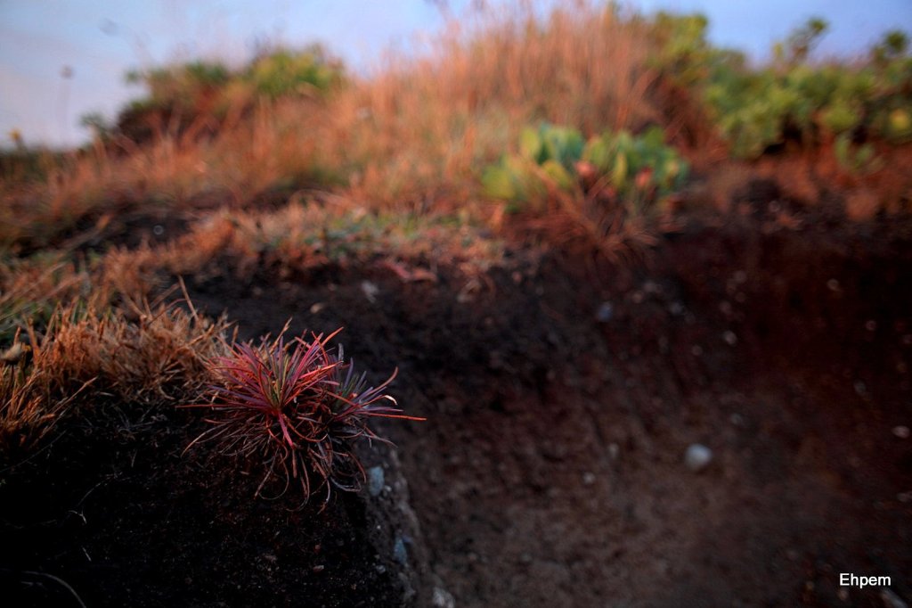 In three earlier posts (herehere and here) I have shown the clouds from a lightning storm that displayed a couple of weeks ago, some in colour and some in black and white. Once the sun had pretty much finished setting and the lightning was spent, I turned my attention to some small plants growing along the eroding edge of the Chinese Cemetery. Their red stems and red and green foliage were lit up by the lingering glow of sunset off to the west.