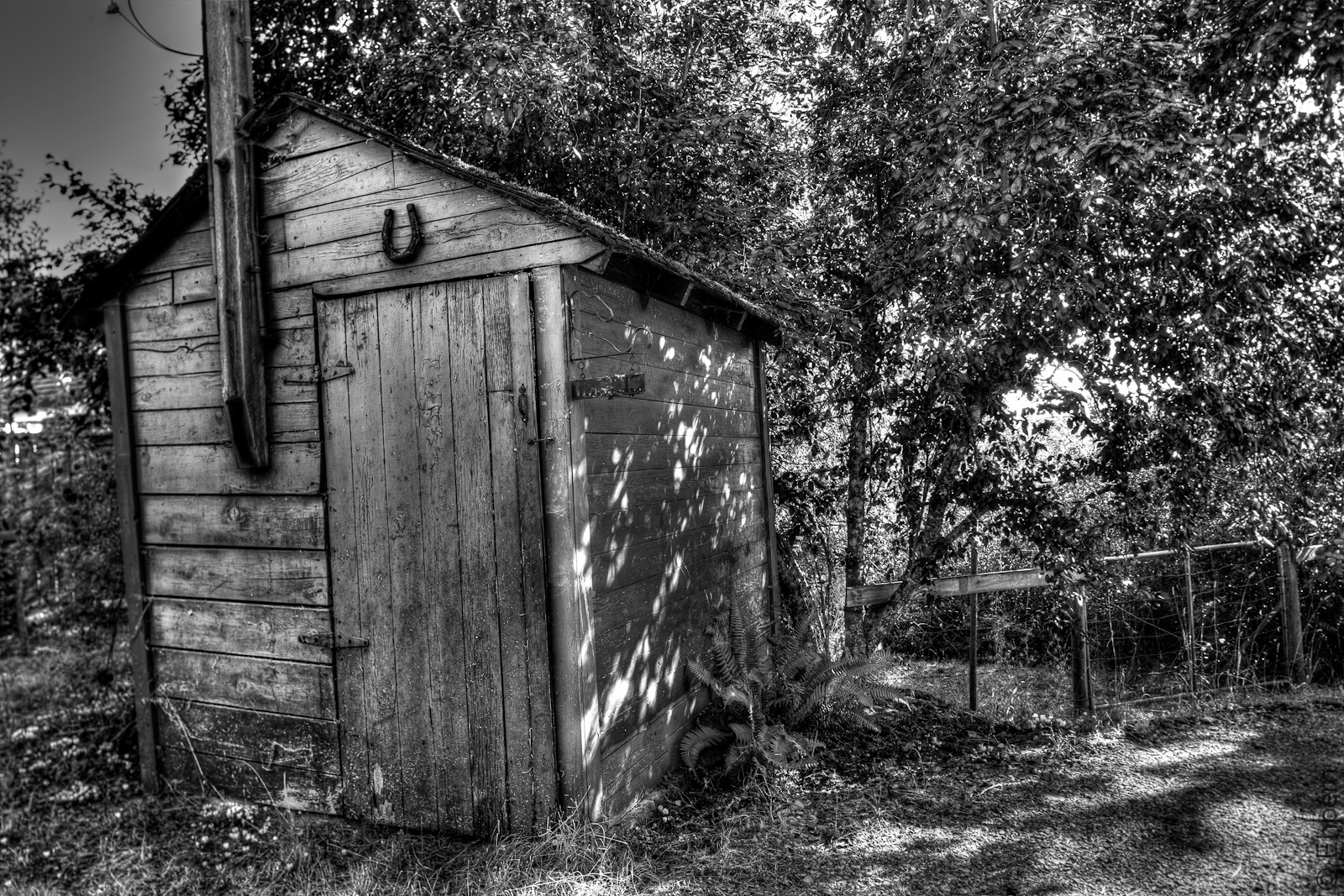 Another of the black and white HDR experiments from last week, of a second pump house near the first one I showed, in North Saanich. This one is known as the Red Pump House by the owners.