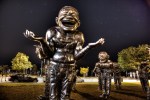 All are bracketed shots processed as HDR with Photomatix. I think that the details shots really lend themselves well to this method – no matter how you process them, photos under street lights just seem to have a strange feel. These do too, but with much less of the typical weird colour of either street lamps or HDR. There is a bit of ghosting, but that is the case in the original long exposures with people walking into and out of the shot, not to mention star trails. In one you can even see the faint blue stripe of someone’s cell phone as they walked among the sculptures. I think this is a neat blend of techniques, and am happy with how it worked out.