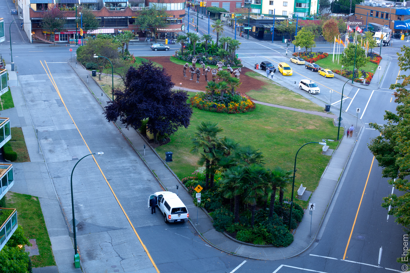 I love these shots…and I love the memories they evoke. On our first family trip to Vancouver we stayed at the Sylvia, truly one of the most beautiful hotels. The room was ridiculously spacious with high ceilings and wonderful views of the beautiful city that is Vancouver. And last March, I spent a fun evening at the parkette with those statues taking pictures of my daughter hamming it up…imitating the statues’ poses. That brief visit, allowing me a glimpse into her new West Coast life, will always be a treasured memory!
