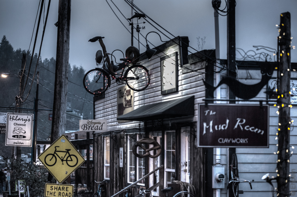 Cowichan Bay has a number of stores along the waterfront, mostly in old buildings. This one is a bakery, inexplicably festooned with bicycles. The True Grain Bread website has no explanation or hints about the bikes, that I could see anyway. We did not go into the store as we had just eaten and were wandering around taking photos. I wish I had gone in, the bread looks wonderful.