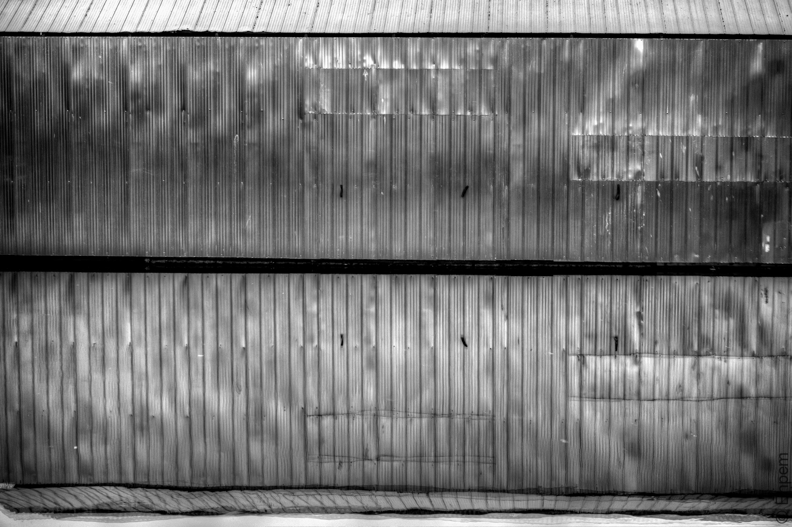 This reflection of a boat house is the last of my Cowichan Bay series that has run the past week. This is by far my favourite picture from that outing and I would have been happy with just it and no others. It was taken as we were leaving the dock at dusk, in low light levels, with the ISO cranked up pretty high and shutter speeds well below recommended (I would love an image stabilising lens, but sadly have none). I took several sets of brackets to ensure I got one set in focus, though the shot does not really need an HDR treatment. However, it does give ghosts in the reflections that work very well and brings out the glow in the aluminum surfaces and so I have stuck with the HDR version. The black and white conversion seemed obvious, it was monochrome anyway, but very blue, too blue for my tastes.