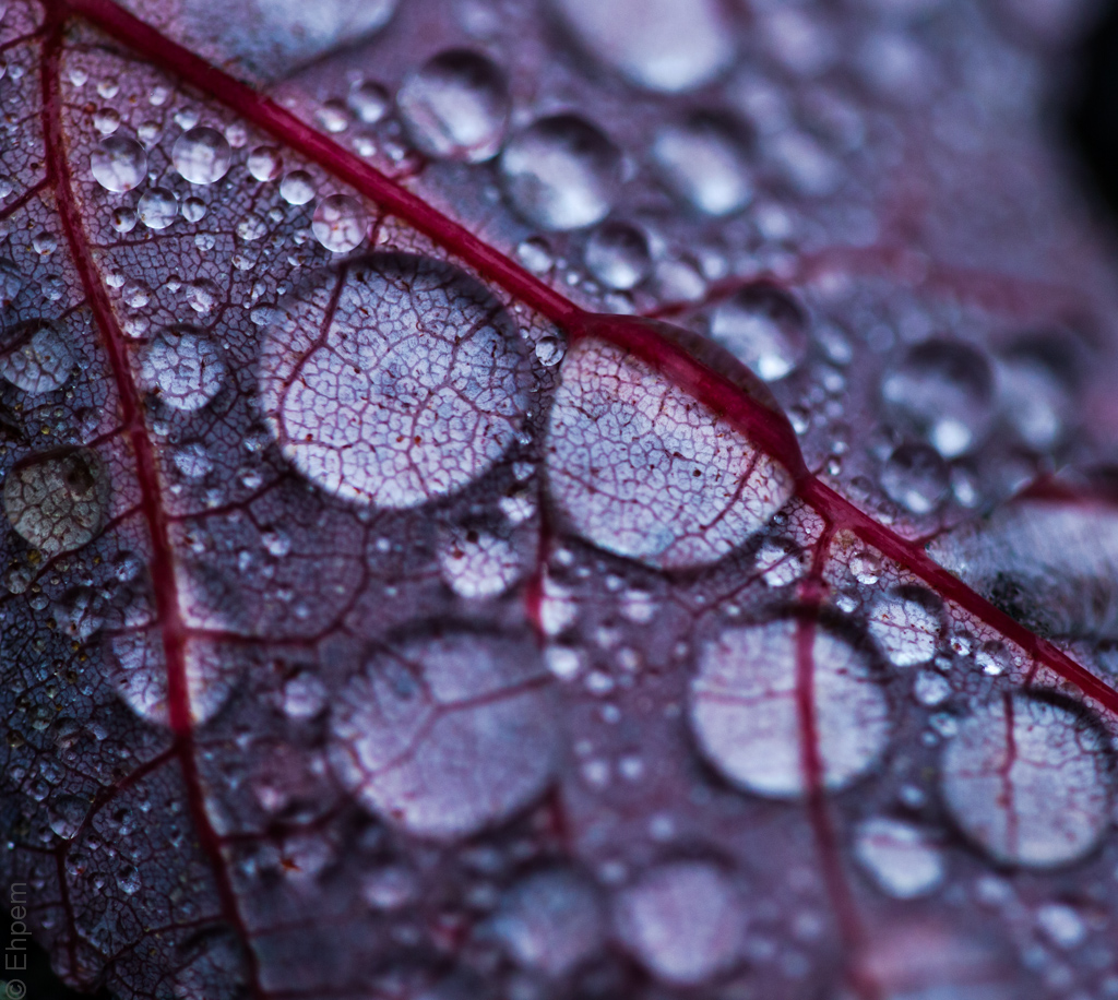 I was drawn to the colours, especially the underside of the leaves. And, of course, the water drops.