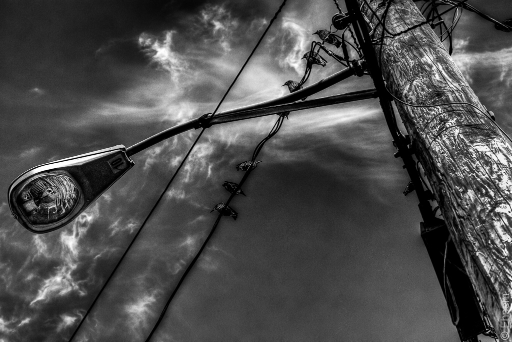 First, I was drawn into the image by the clouds, then moved on to the birds and ended up in the lamp! Yes, perhaps a little over the top in processing but it really works. Perhaps a good The Twilight Zone (original series of course) intro?