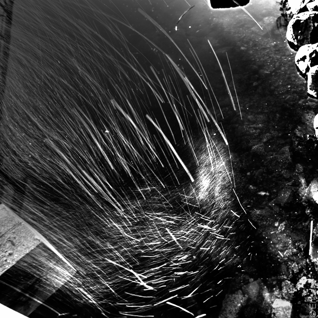 To me, the b&w version is completely abstract – it looks as much like sparks as it does anything else. I like it.