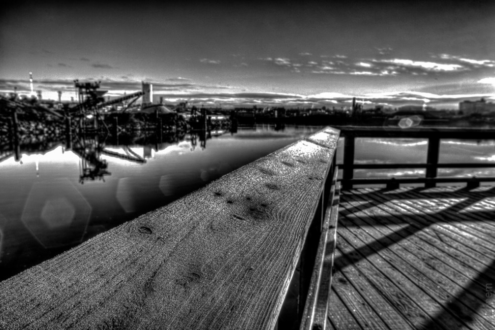 The black and white one shows more derail of the pilings and other structures along the far shore. I like it for that.