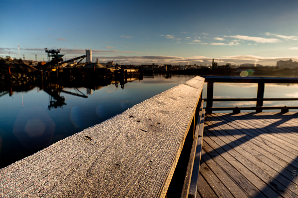 More from the Dockside Green series. This rail, and the deck surface, had a nice coating of frost that caught the light very well as the sun was rising.