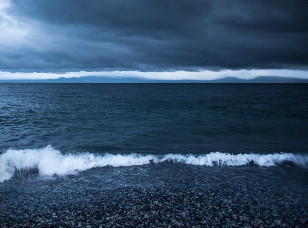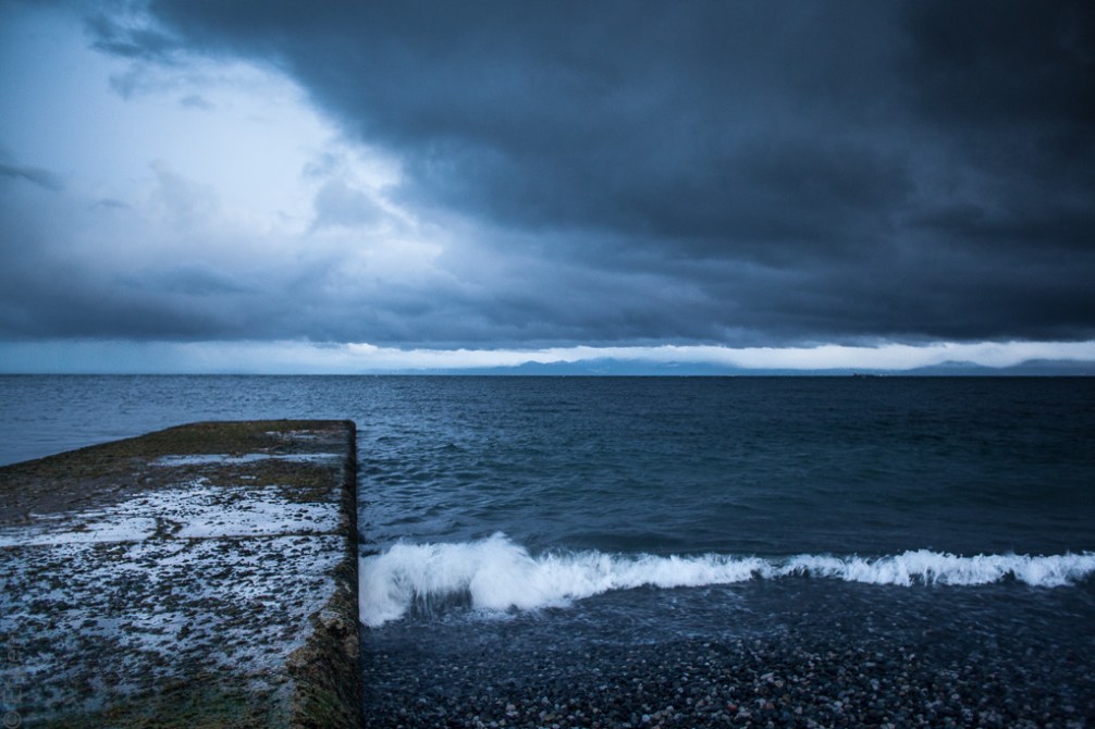 This photo is from a few days ago and is by way of contrast with the warmth and calm of yesterday’s post. Yes, it is another Ross Bay storm drain photo, this time taken at dusk when the light was nearly gone.