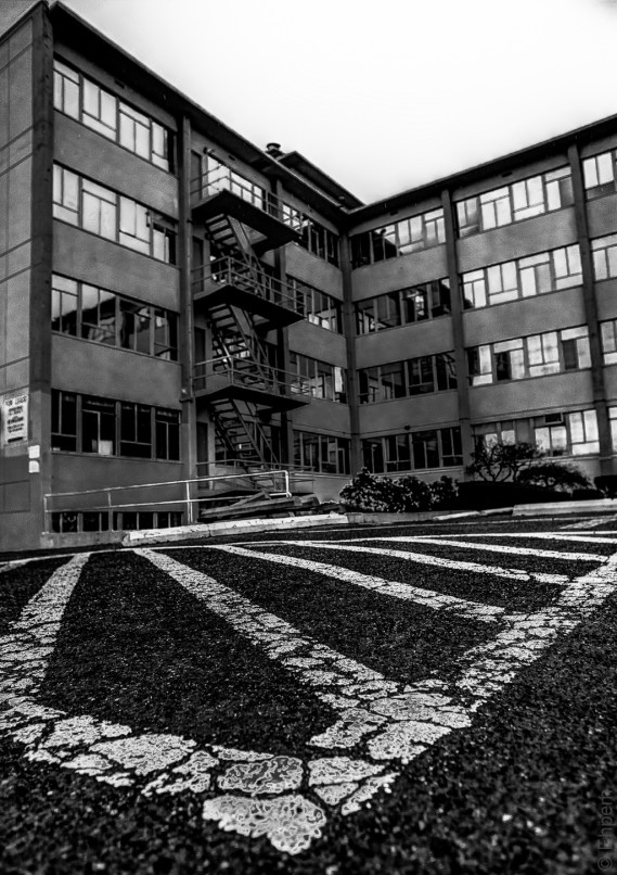 1. Great shot. I prefer the black and white as well. It makes it more about the lines and textures. In the color version my eye just kind if stops at the yellow lines, but with the black and white I’m drawn much deeper into the photo.