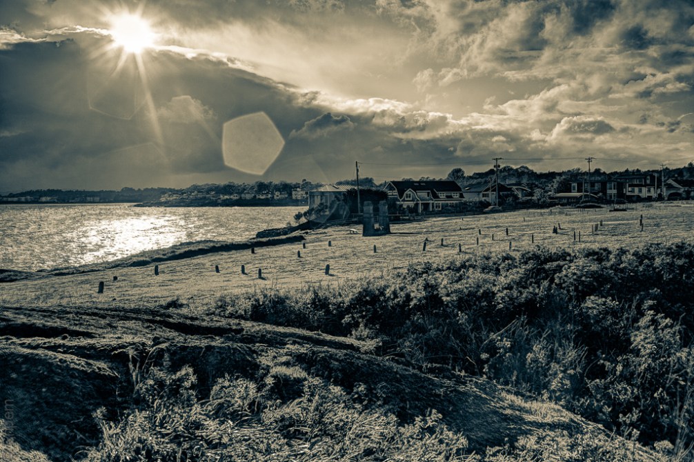 Flare is one of those problems you don’t see until after you’ve shot the image. It’s a little dominantly placed in the image but I can live with it. I’m torn between the two colour shots – there is more detail and sharpness in the HDR top image although it is just a little forced. But it it the strength of the image that does distract from the flare