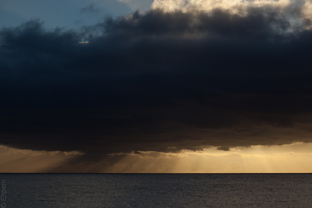 • Thanks Andy! Oppressive is the word I was groping for, and never found. I was out at the same spot this morning, but the sea was slate grey and the clouds lighter grey and not much definition in anything. It is wonderful how it changes all the time. I took some pictures and the camera is sitting close (ish) to the wood stove drying out. Me too.