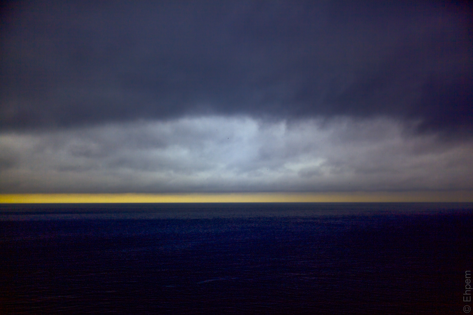 The top image is the process Andy suggested, the second version is applying the same method but without cropping. The third version is the original processed image, which is a different one than I presented as Horizon(tal) X, though very similar. It has a bit more light in the dark blue that I thought might look good in the even more abstracted version. The last image is the largely unprocessed original (a touch of sharpening and horizon straightening) – you can see that I was stretching pretty far to find some light on this very gloomy day. And since there really was none, it seems appropriate to completely abstract this photo. I still like what I did with it in the first place, but I do like the first shot a lot too. Great suggestion Andy!