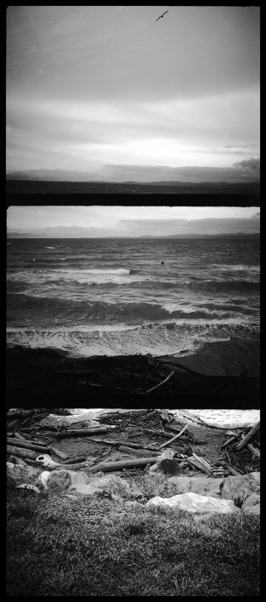 A blustery day on Clover Point looking towards the west. The seagull appeared at the perfect time – in fact I would argue that it makes this shot. I changed the exposures between each frame and think that I used a yellow (K3) filter on the upper two shots as well which might be why they are a bit less sharp – I am still working out what the issue is with that filter (probably how I am using it). I also need to work a bit more on the overlap between frames.