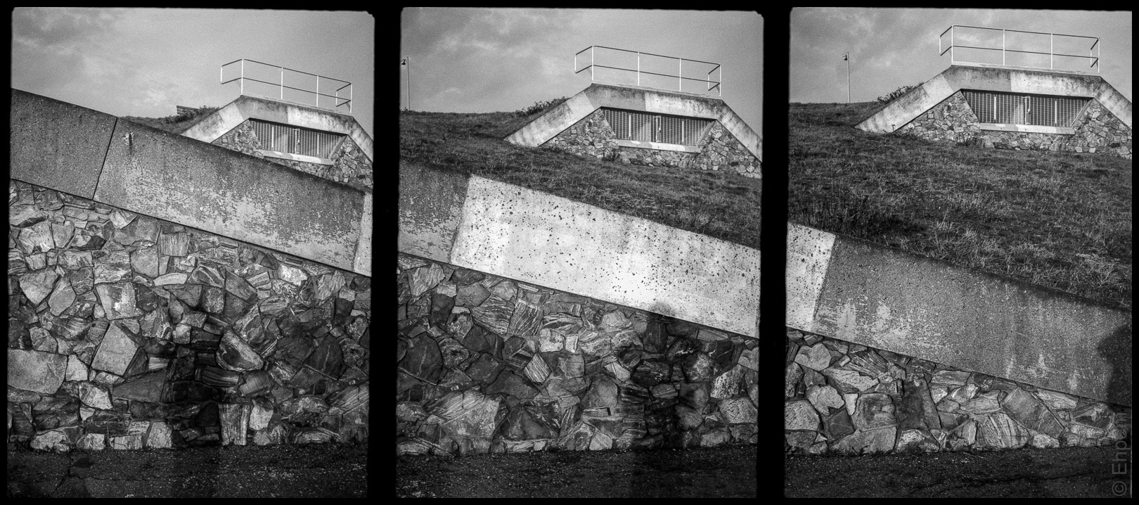 Last week I featured views of the Clover Point pumping station, made with my digital camera. Today’s photos are of the same place and time, but with the half-frame film camera. What I find interesting about these panoramas is that each shot is from a slightly different viewpoint.