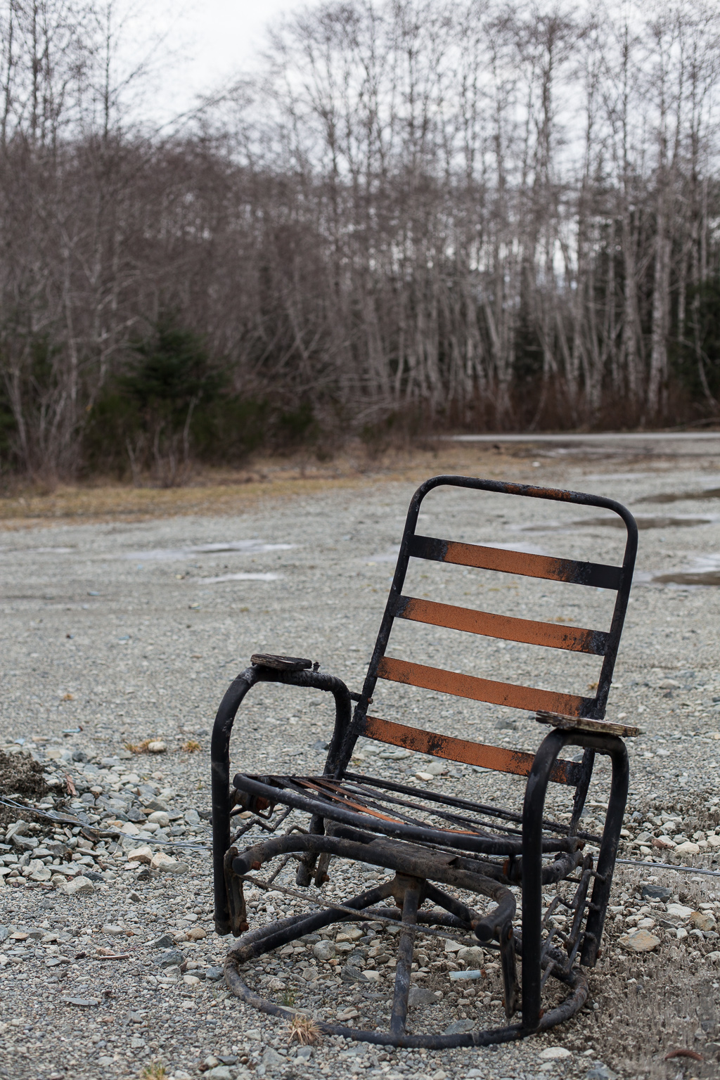 More from last week’s trip to Port Renfrew. This, I think, is the proverbial hot seat – you know, the one they threaten you with if you are acting out of line. I can tell you one thing though, this hot seat is not in hell, since the land all around was frozen over. While I took these shots my eldest son, 6′ 2″ and wearing rubber boots, stomped hard on frozen puddles trying to break through the ice. I tried to get him to sit down on this chair, but without luck – perhaps his white sweater had something to do with it, not to mention the camera pointed his way.