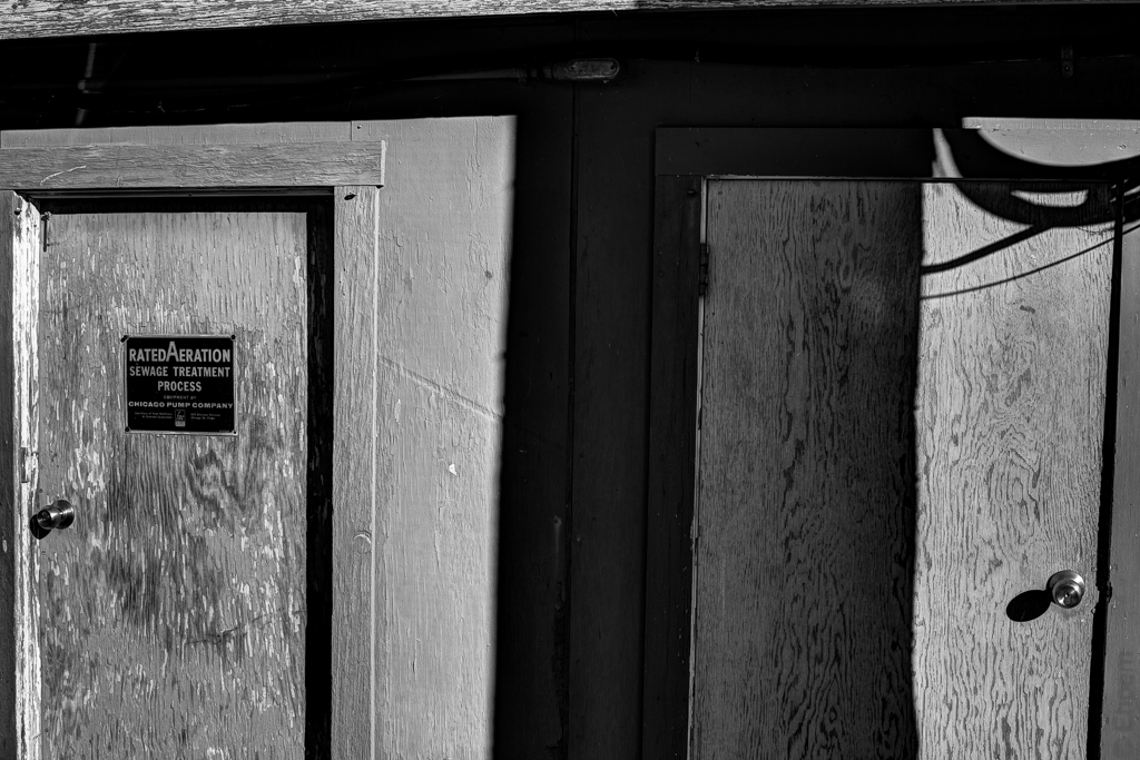 These doors are along the side of the old fire hall in Port Renfrew. Up above is a siren in what looks like a belfry. I think that is part of the fire hall, but you never know. Perhaps it goes off every time someone flushes something they shouldn’t like used motor oil, condoms or white rabbits (as the Roto-Rooter guy called them last time he cleaned my drains).