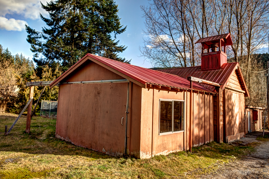 This is the old fire hall in Port Renfrew. Up above is the siren in its own little tower. The new hall is quite a bit further away on higher ground but I expect that siren still works and may still serve two functions. One is to call the volunteer firefighters to the station for an emergency. The other is for a tsunami warning as Port Renfrew is very vulnerable to such waves. It seems appropriate that a sirens call is also code for “run away”.