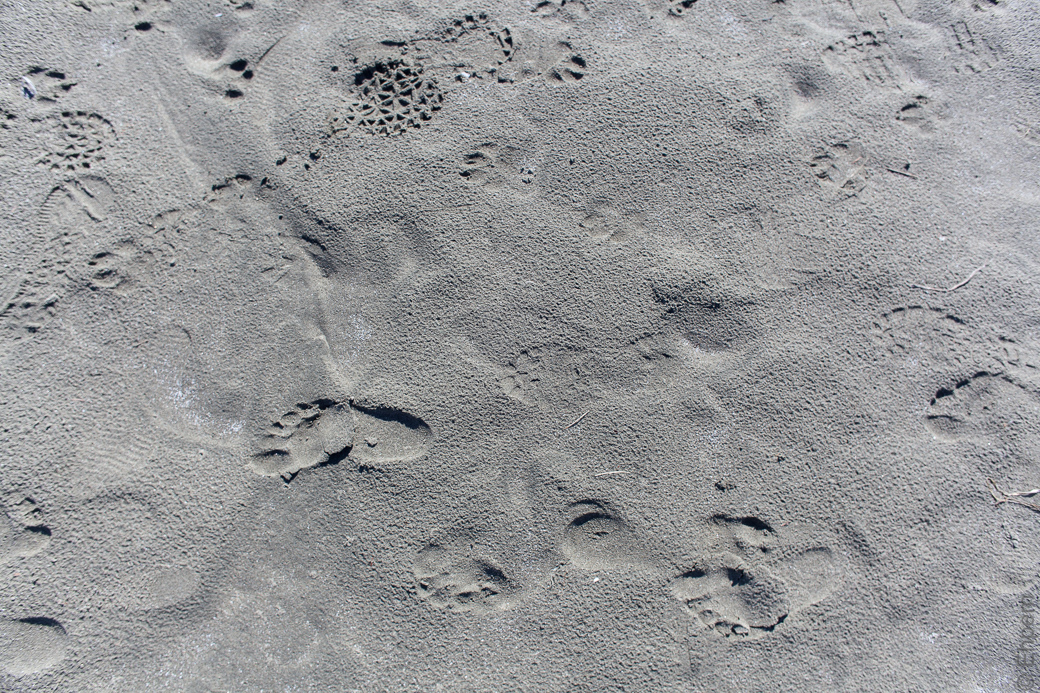 A few weeks ago I stayed in Tofino on a job. I was at a perfectly located hotel on Mackenzie Beach; the view from my room can be seen in this post. I had little chance to get out and take photos, but did venture onto the beach for a few minutes. It is heavily used and much of it has been tracked across since the last really high tide. I prefer the patches without footprints, though the prints do have a certain interest.