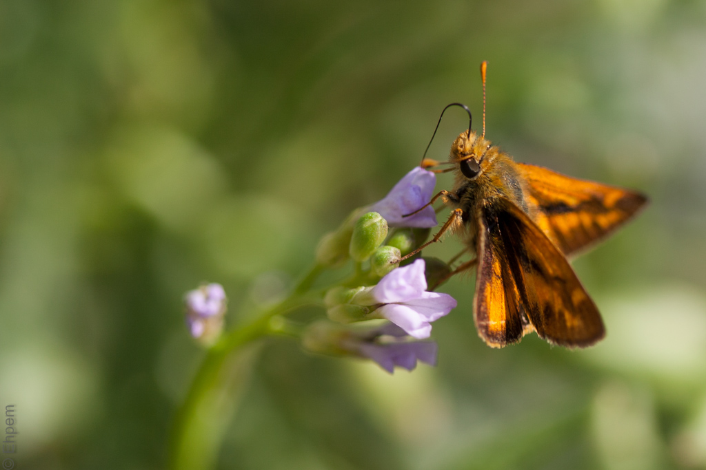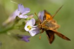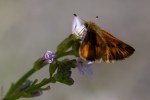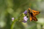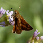 I don’t know which skipper it is (I am guessing it is the Woodland Skipper), nor do I know what the flowers are (not even guessing on that one). Thank goodness I don’t claim to be a naturalist!