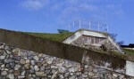 A few days ago I stopped by Clover Point in the area of the sewage facility to test a roll of film and new camera body. My regular visitors will recognise this as a frequent subject of my photography. This visit had the rare timing of the doors being open and the inner workings being partly visible, so some of today’s photos capture that aspect for the first time on these pages. There have been some changes since my last visit – all the main steel doors are now covered with photographs of the surrounding rock (my lead photo includes, on the right, a part of an open door laminated with a photo), and the signs warning it is foolish and forbidden to climb the rock walls have been re-posted, ironically on top of the un-climbable photo of the rock wall. The graffiti artists have come by to add their improvements to the photographs which makes me wonder had the city used photos with graffiti painted on the rocks whether that would have deterred graffiti on top of the photos. I know there are standards of behaviour in the tagging community when it comes to over-painting other people’s work, I just don’t know what those rules are. Painted murals don’t get tagged, but I guess that photographs do, or at least ones like this.