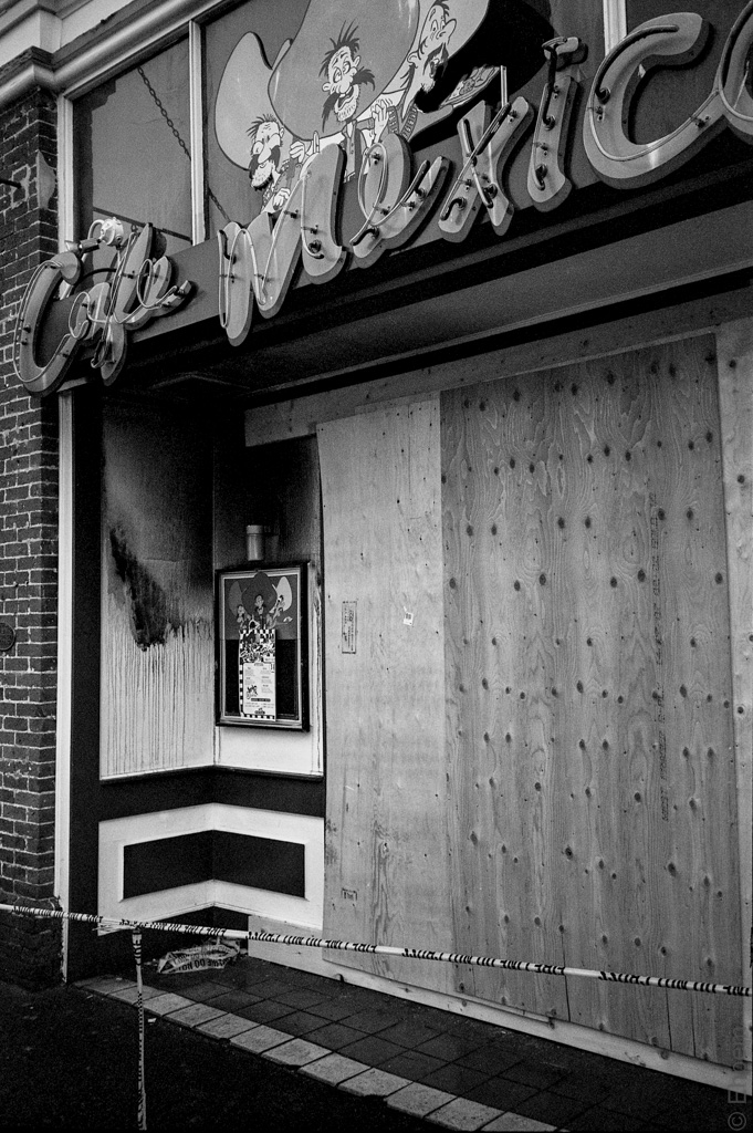 In a way it is a shame that the horrible bandito cartoon stereotypes in their signage did not burn too, so that it might be replaced with something more Mexican.
