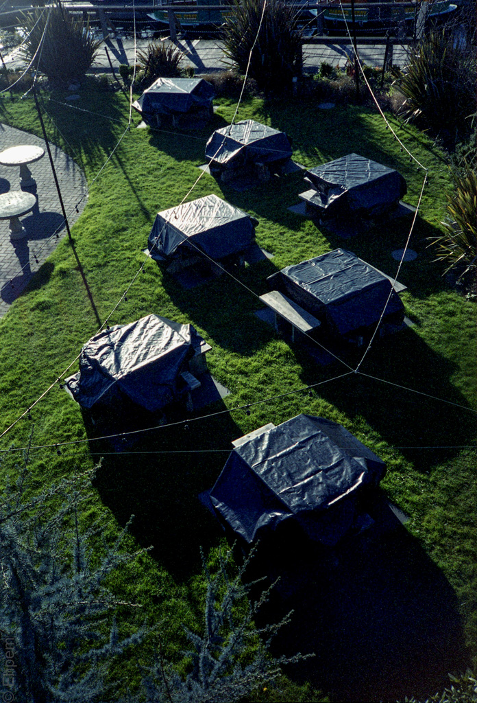 This visit made a few weeks ago while testing a camera has the tables looking like coffins, shrouded in their black tarps.