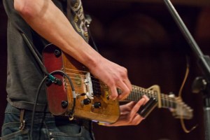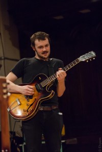 I was particularly taken by the guitars made from a tin can and a cigar box. That was a bit of a theme of the evening with various modified or made up instruments, including the slide guitar in the Sam Weber band. I find it all quite familiar – there is an analogue and slightly random-outcome aesthetic that is closely related to the lomography approach to photography, or even to shooting with film. There can be unexpected and yet beautiful results, and hard to control and yet beautiful other aspects. Lovely tones in both cases; aural grain if you will.