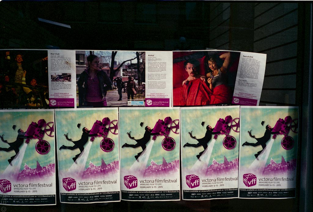 These slumping posters in an empty office window are like a memorial to the recent Victoria Film Festival.